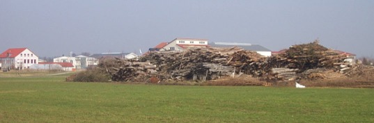 Holzlager vor dem Gewerbegebiet Eresing, das zentral durch ein Heizkraftwerk mit unseren Hackschnitzeln beheizt wird. |